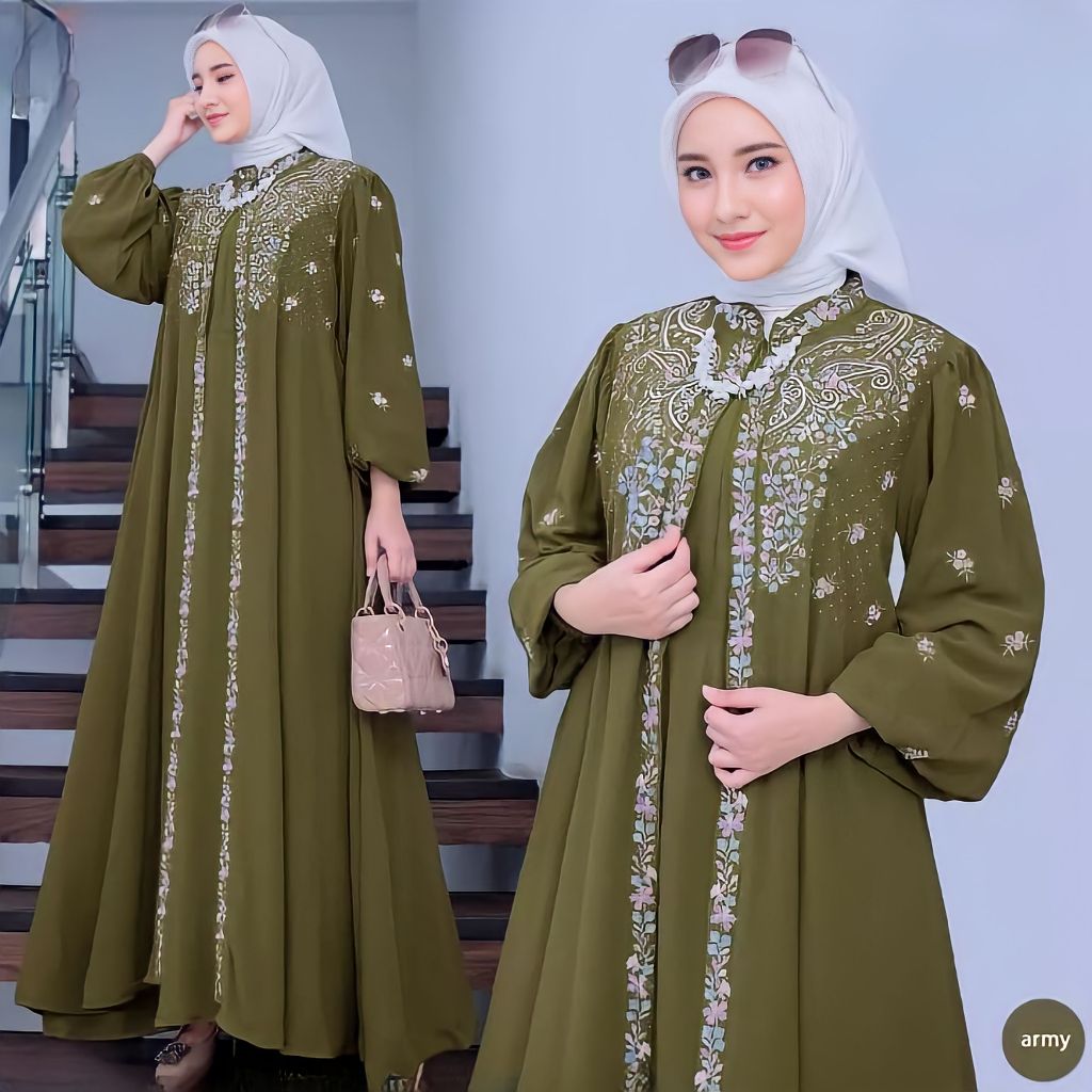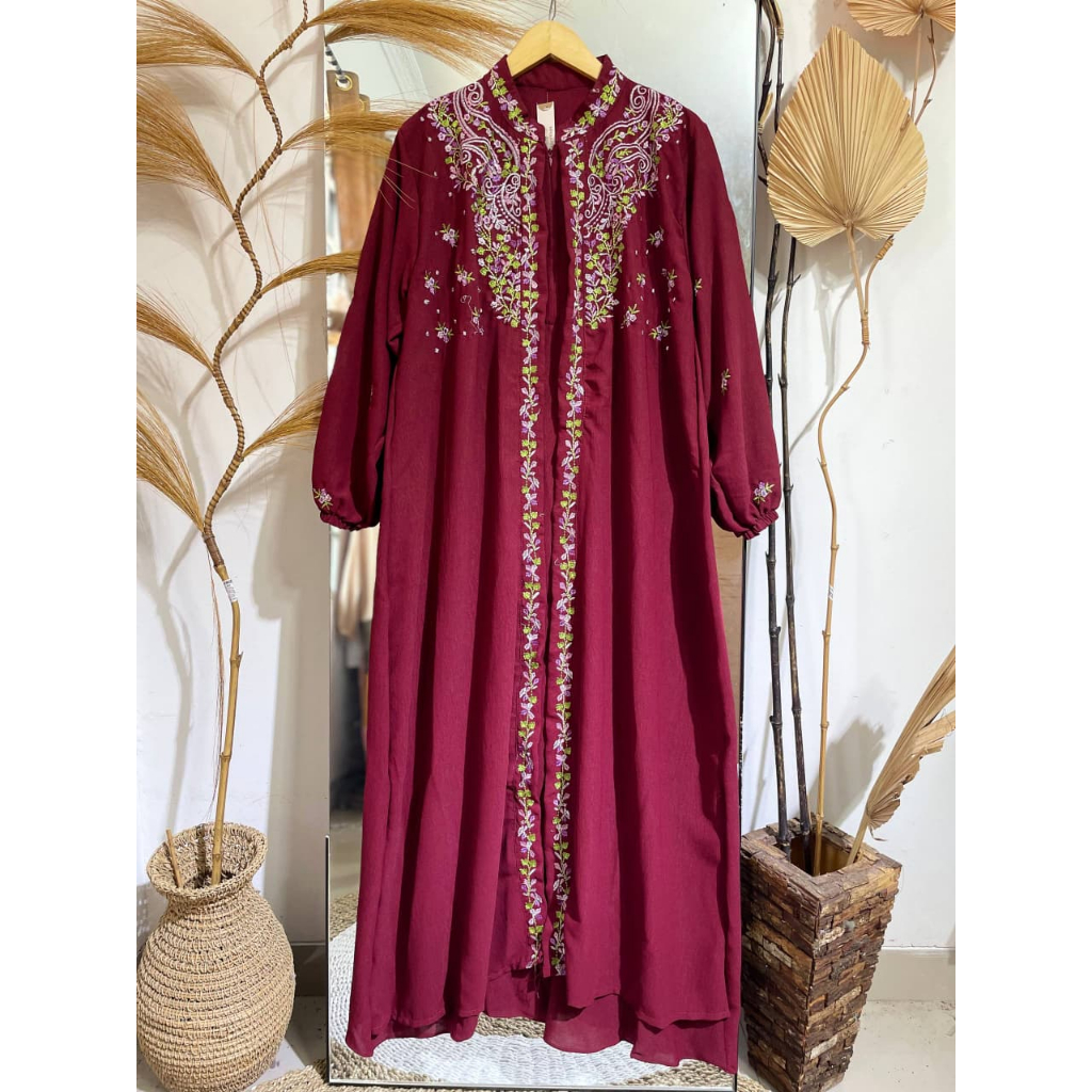 Zuca Shop CLARA DRESS Crinkle Airflow Premium Gamis Kringkel Kombinasi Bordir Gamis Terbaru