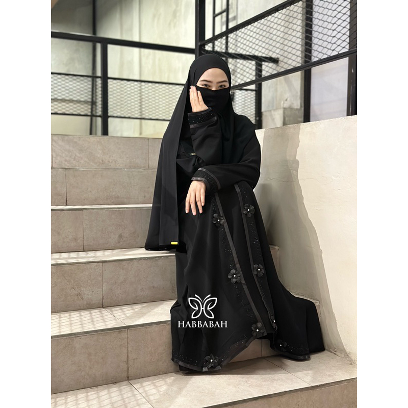 Abaya Aurora Hitam Premium – Gamis Outer Elegan Syari Masturoh Adem Temboro