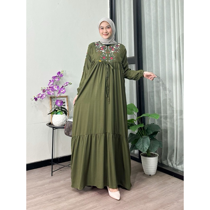 Arni Busana - Amanda Maxi Dress Gamis Bordir Bahan Rayon Twill Signature Tebal Dan Adem New Launching
