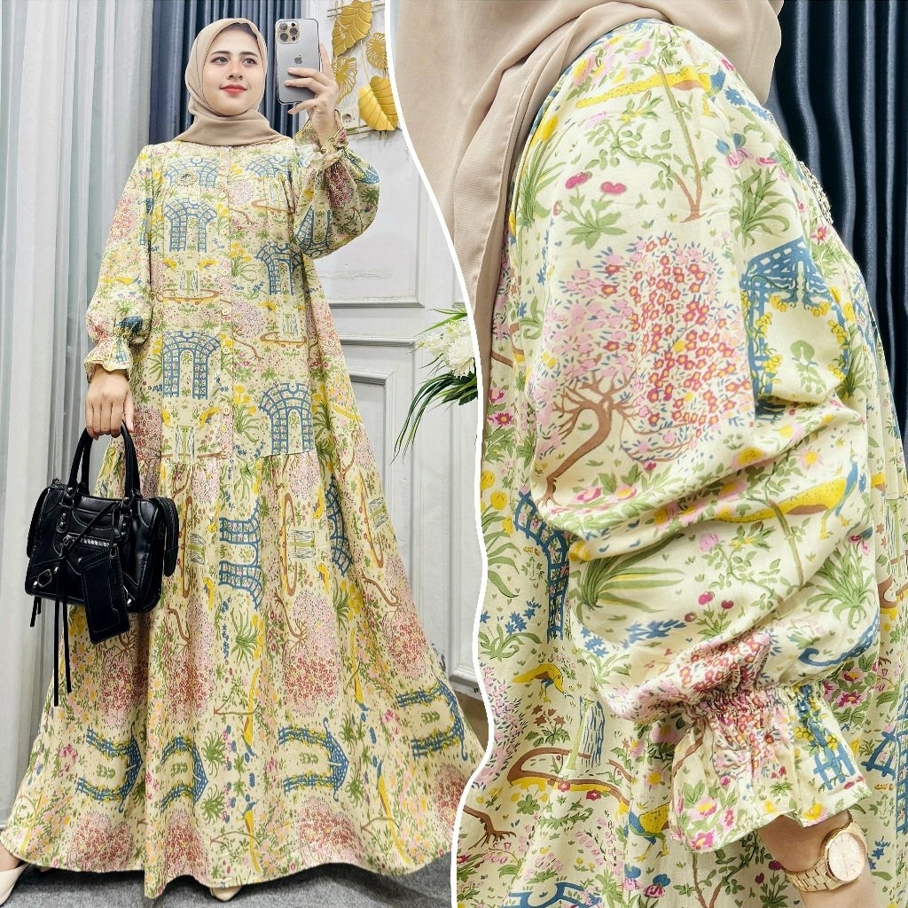 Gamis Arsyila Gamis Lengan Balon Gamis Rayon Premium Lengan Smok