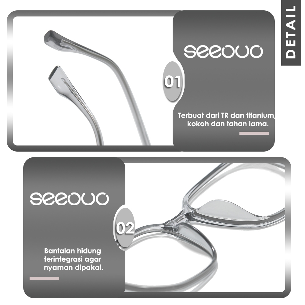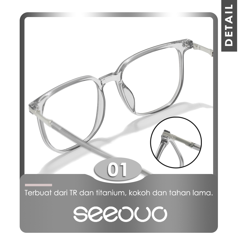 Seeouo Kacamata Titanium Style Kotak TR Simple Fashion Premium Frame Pria Wanita Lensa Bisa Minus Antiradiasi Blueray Bl