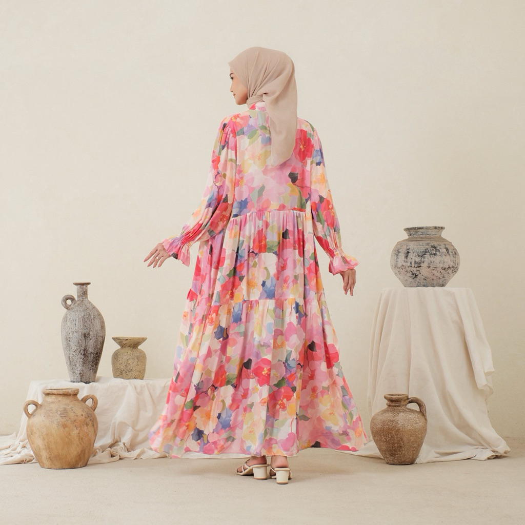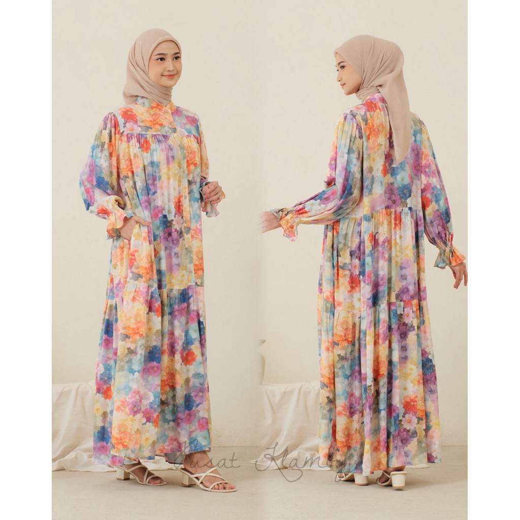 Leony Dress Rayon Gamis Rayon busui Gamis motif Terbaru Lengan Lonceng Gamis Jumbo