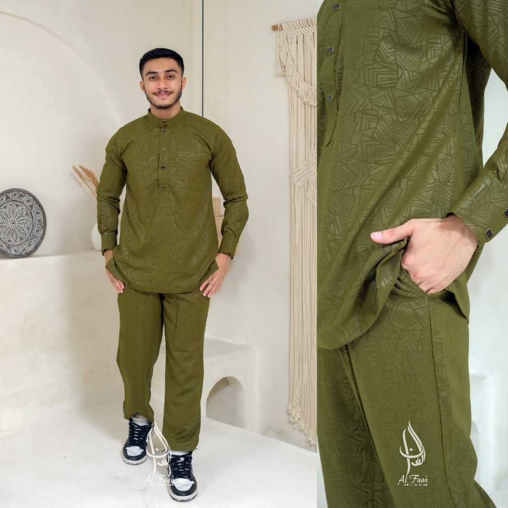 Baju Koko Setelan Pakistan pria motif embos Kemko Alzan Jasko Gamis Jubah Pria Muslim el terbaru Alzan