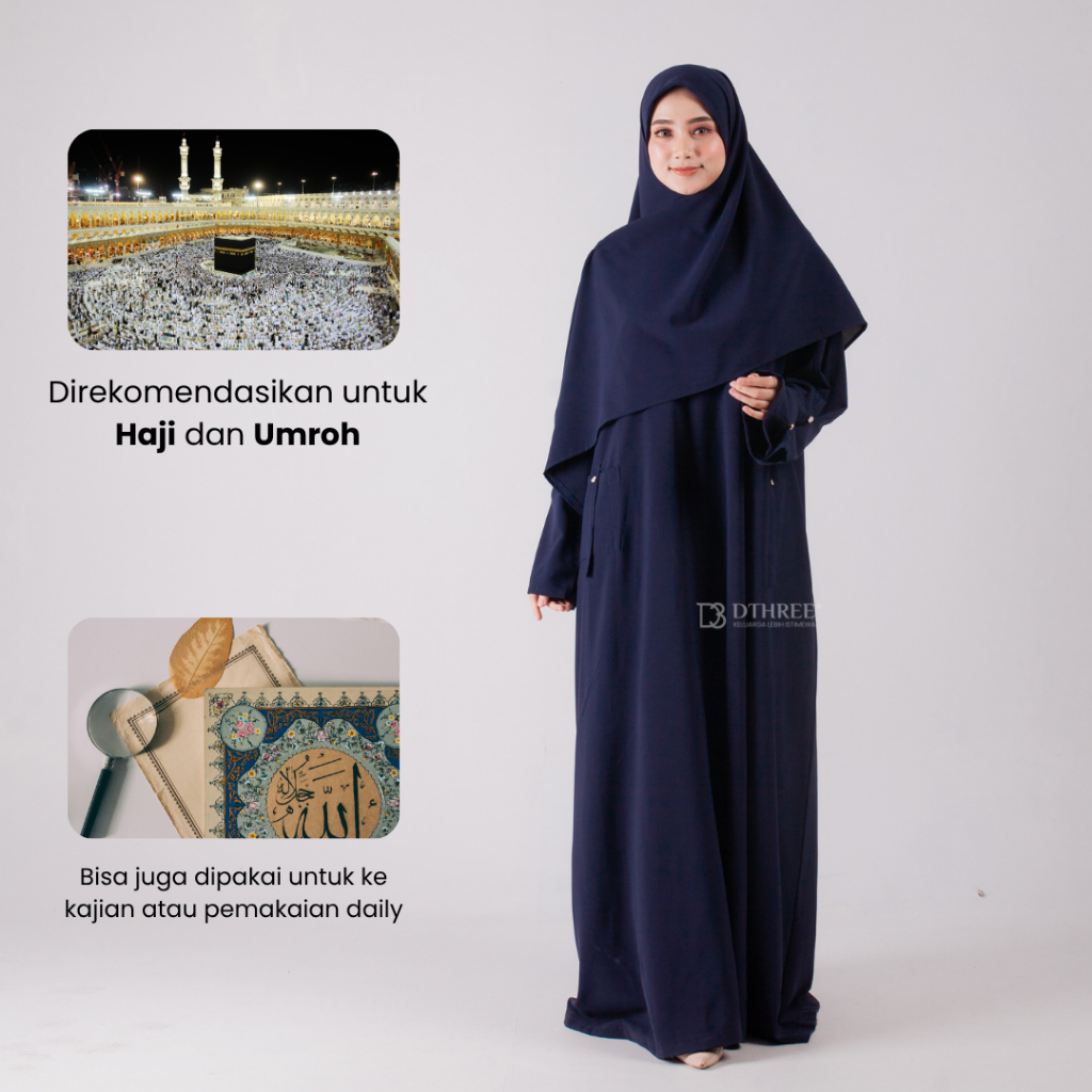 Dthree - Humaira Abaya Set Anti UV ( Gamis Umroh Haji Abaya Syar'i Malay Set Kerudung )