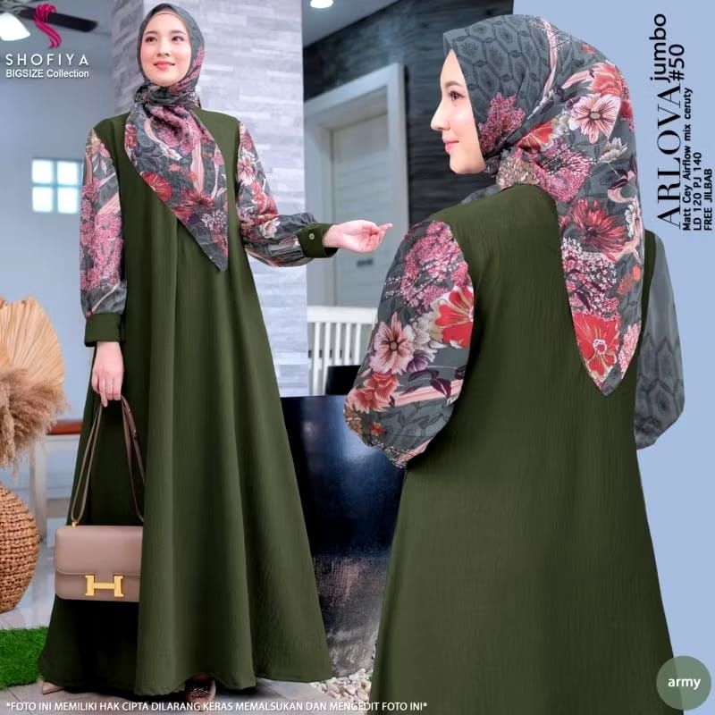 NEWW,,,,ARLOVA BY SHOFIYA DRESS GAMIS PLUS JILBAB / GAMIS TERBARU LEBARAN 2025