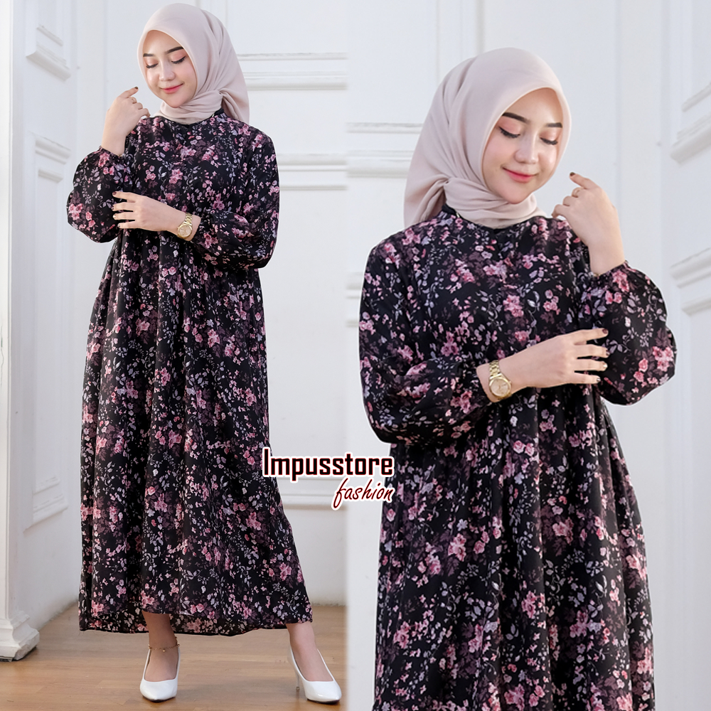 Arsy Midi Dress Gamis Rayon Motif Terlaris Baju Lebaran Busana Muslim Wanita By Impusstore