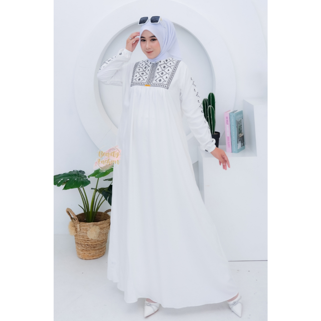 Gamis Rayon Twill Bordir Wanita KAYLA Premium Terbaru Busui Friendly Dress Motif Model Kekinian