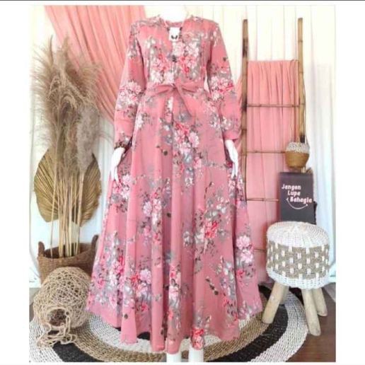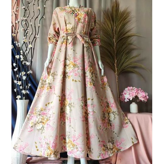 promo gamis bunga motif sakura terbaru bahan katun premium