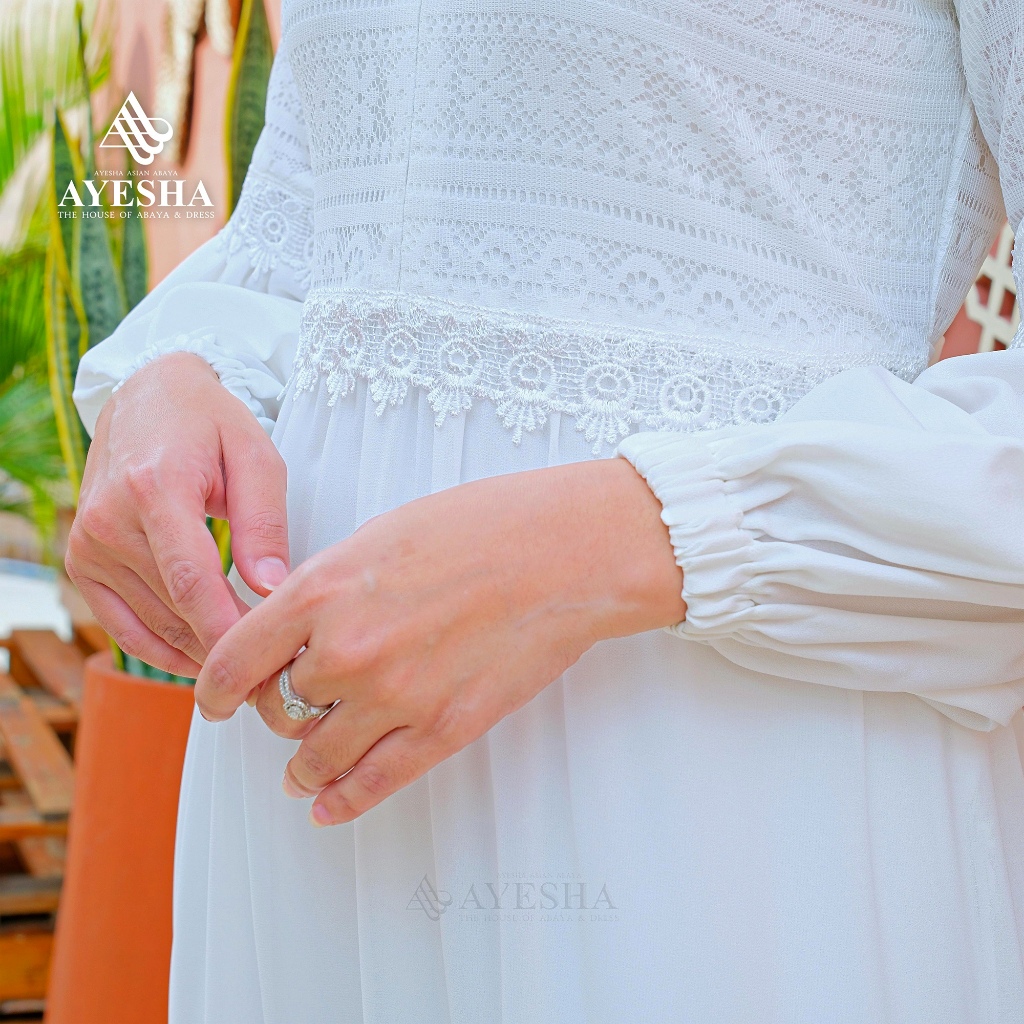 AYESHA Gamis Putih Brukat Wanita Mewah Elegan Terbaru