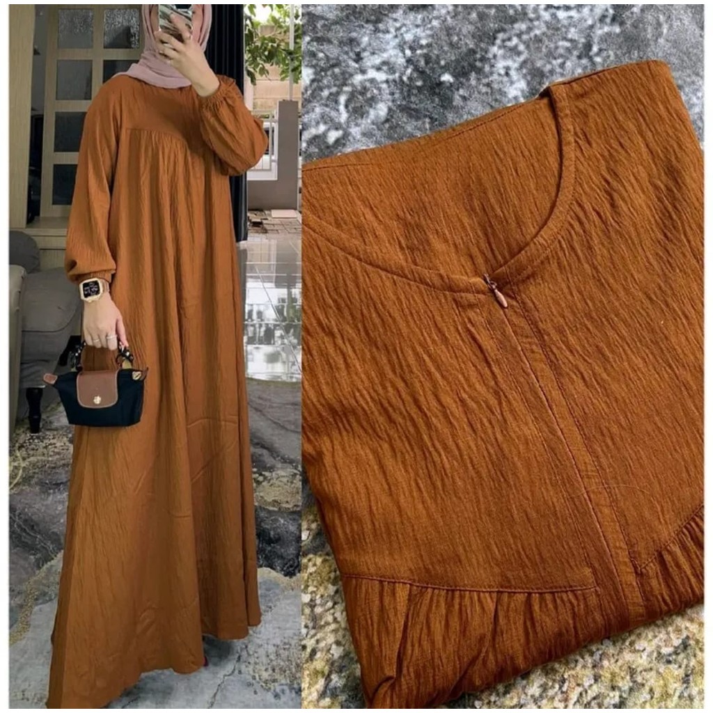 Gamis Polos Crinkle Airflow Premium Busui Frendly Wanita Terbaru // Gamis Wanita Muslim