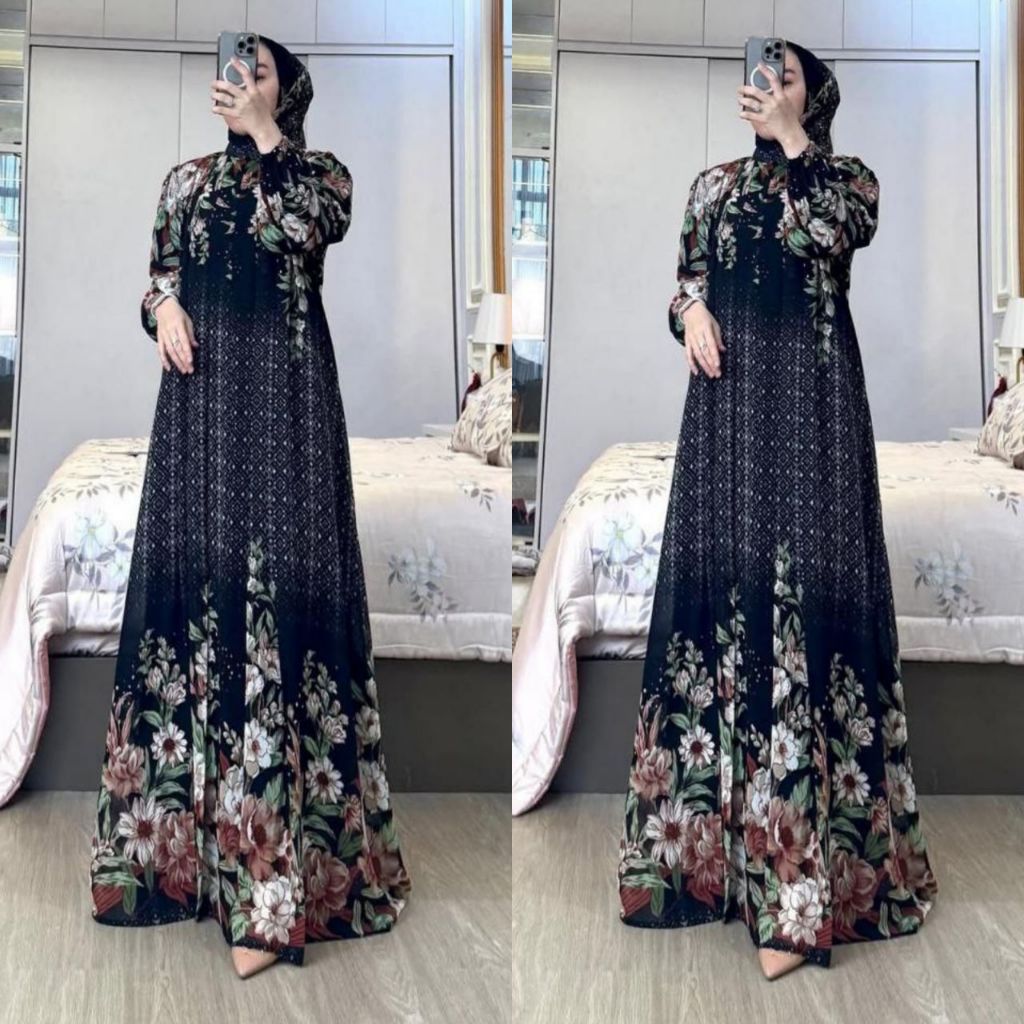 Gamis Wanita Setelan Hijab Segiempat - Bahan Rayon Diamond - Gamis Lebaran 2025 Model Gamis Terbaru