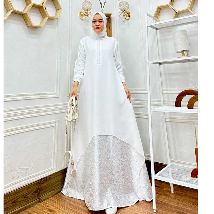 Gamis Wanita Ceruti Putih Mewah Mix Jaguar SWAROVSKY