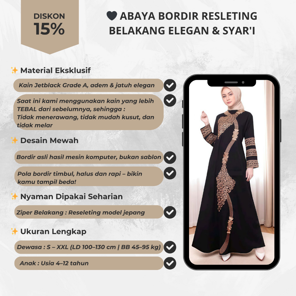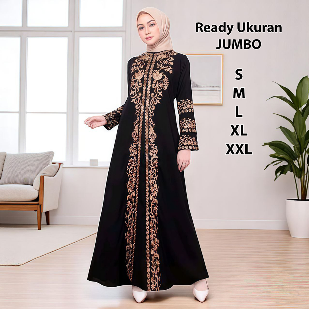 Galeri Abaya Bordir Gamis Turkey 1229 Wanita Remaja Aesthetic Arab Saudi Kain Jetblack Premium Hitam