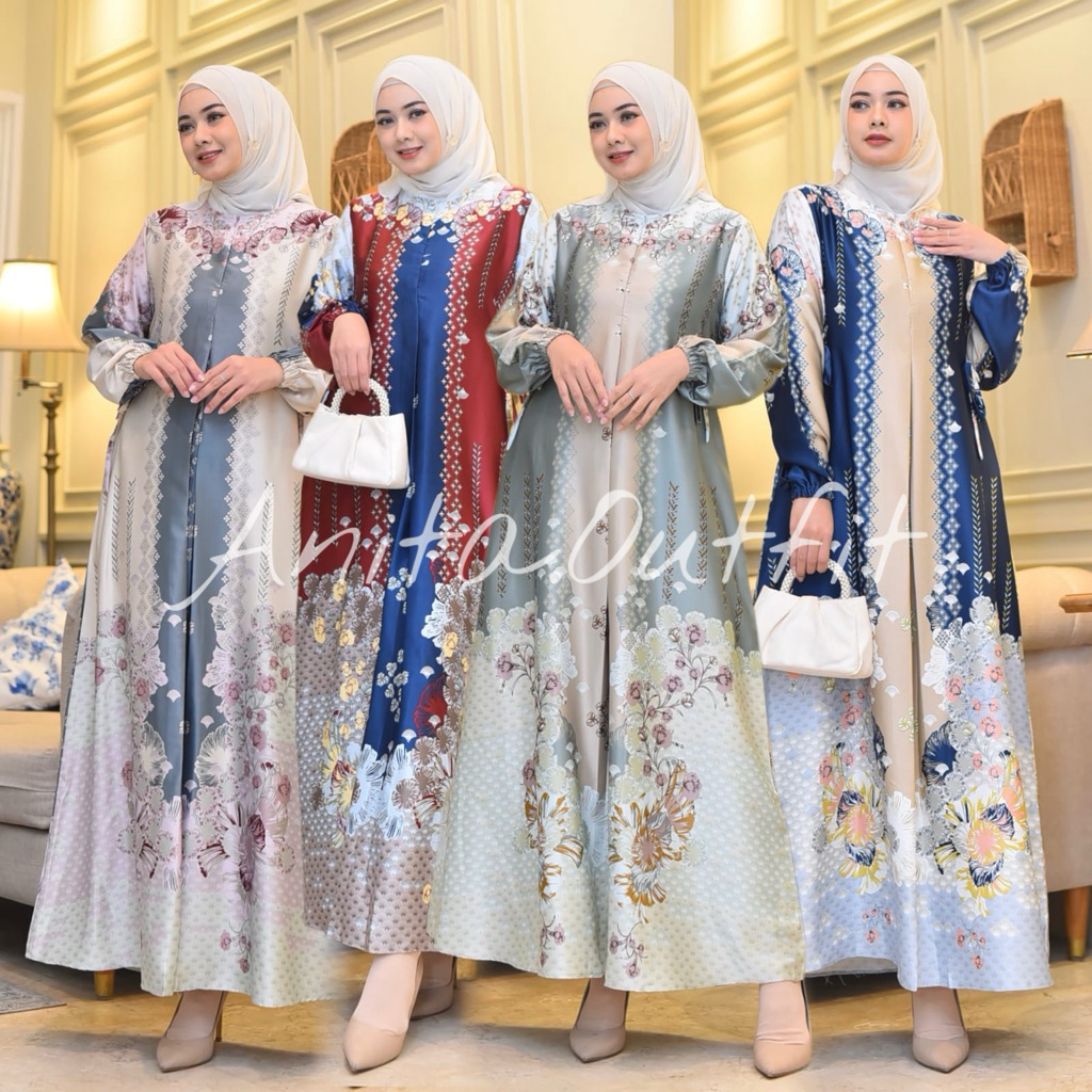 Gamis Silk PREMIUM Anissa Motif Terbaru Wanita Muslim Kekinian Trendy Pesta Mewah Dan Elegan