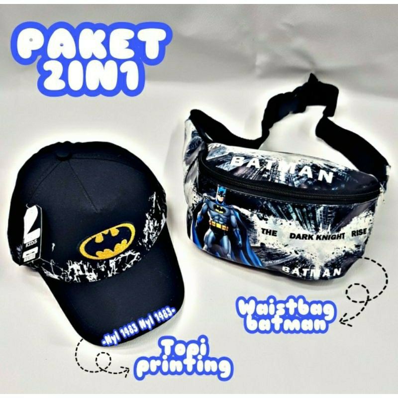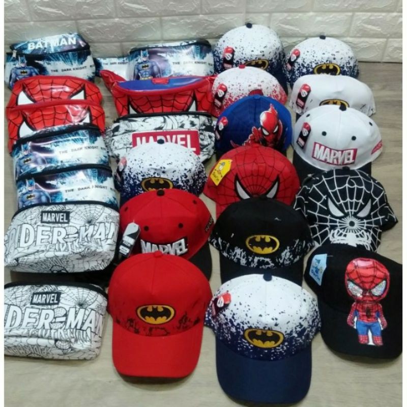 Wesbag anak laki laki, Waist Bag Anak Laki Laki Motif Superhero Batman dan Topi Anak REALPICT