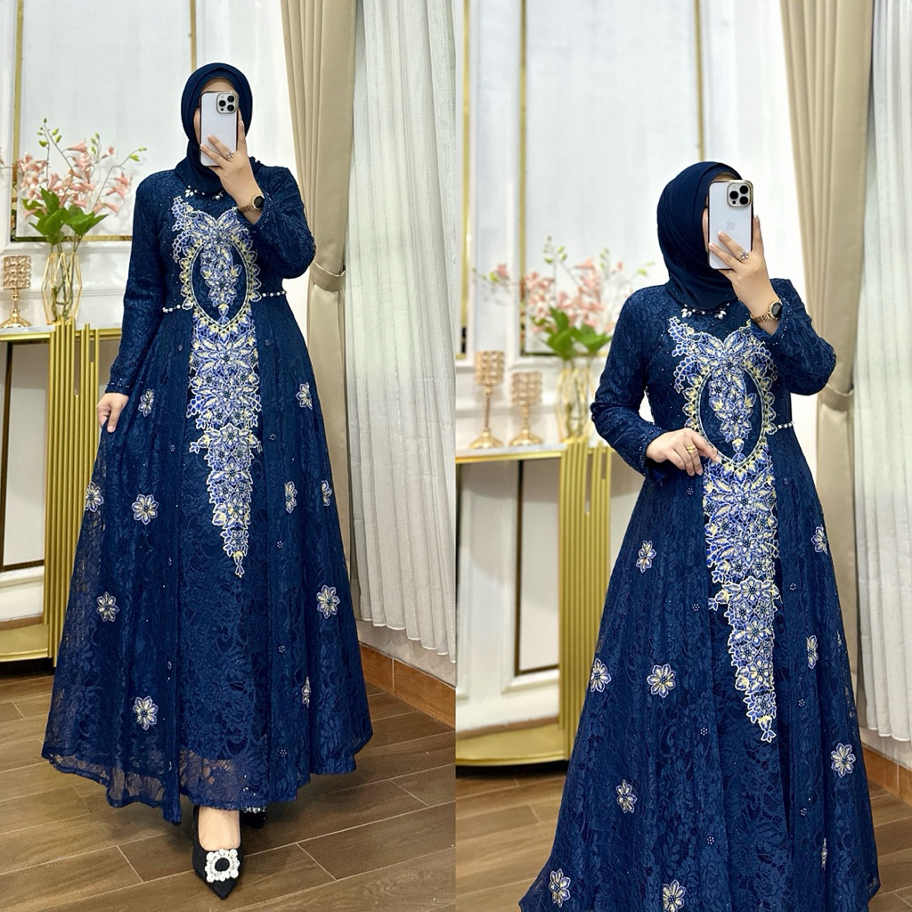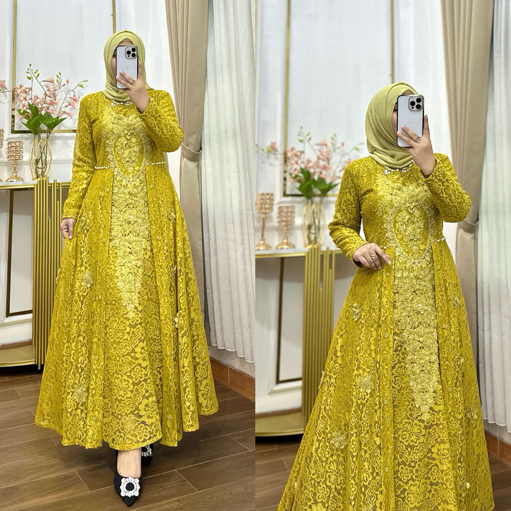 YR - Gamis Citra Dress / Gamis Full Brukat Bordir / Gamis Pesta Mewah