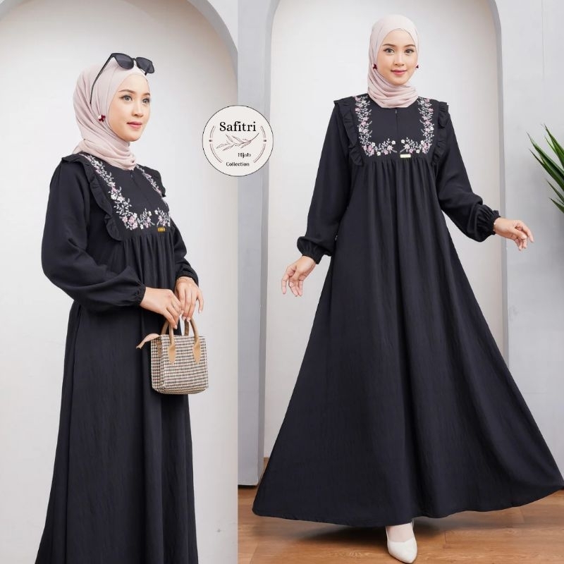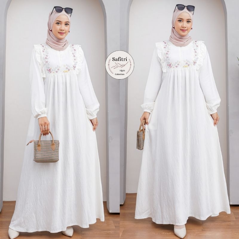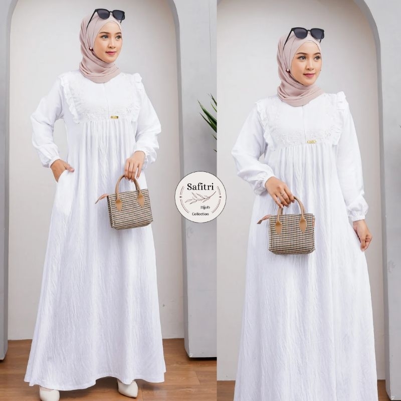 ZORA DRESS 1 Gamis bahan polo linen putih hitam Manasik Haji Thawaf Umroh by Safitri Fashion
