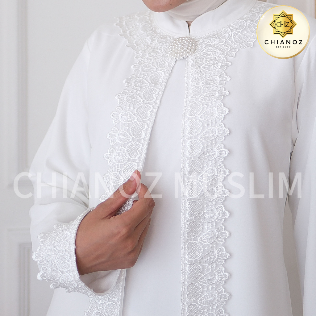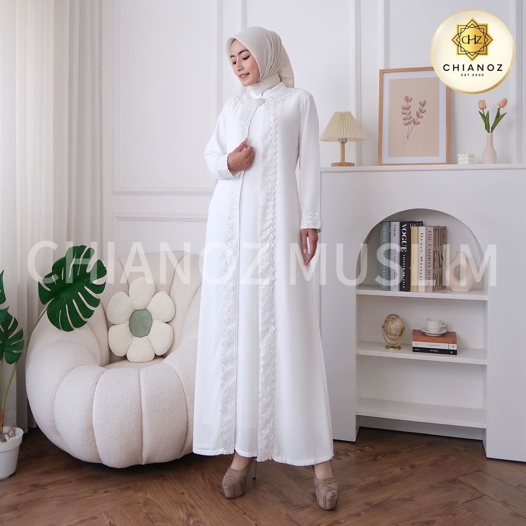 CHIANOZ Gamis Putih Abaya Mewah Wilona Dress FULL Renda Baju Lebaran Umroh Haji Manasik Pesta Akad 116 516