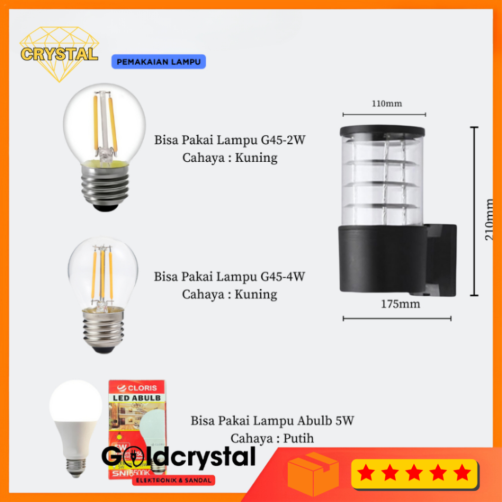 Lampu Dinding 1 Arah Bulat Kaca D1004 Pilar Lampu Hias Taman Lampu Dinding Tempel Outdoor Minimalis
