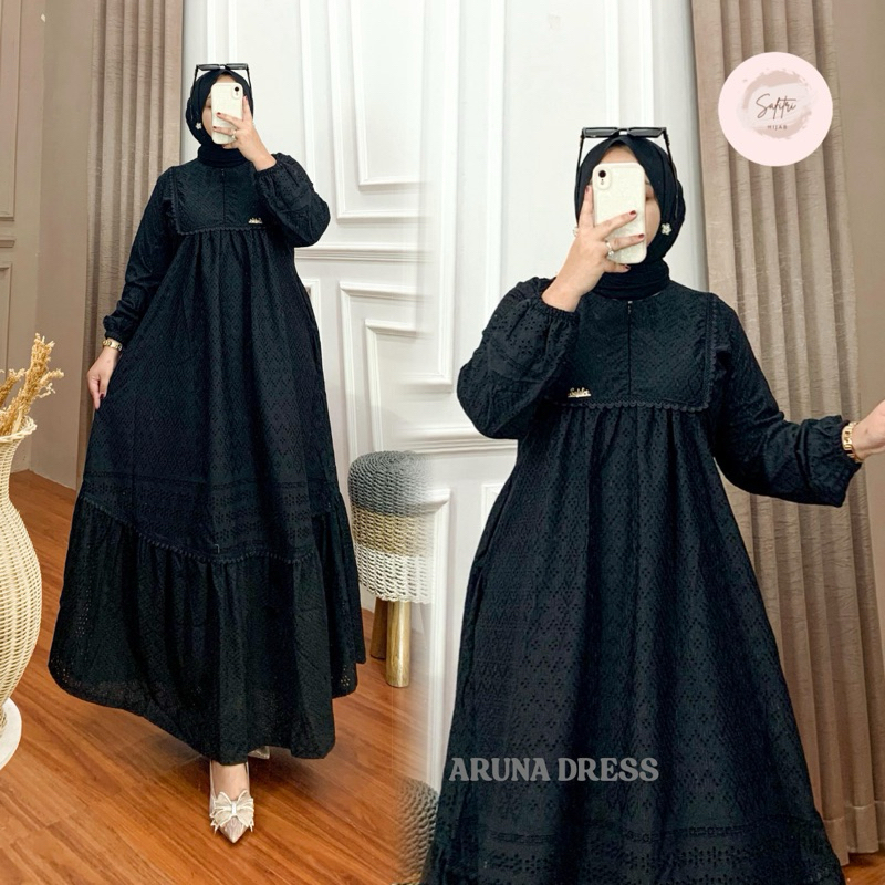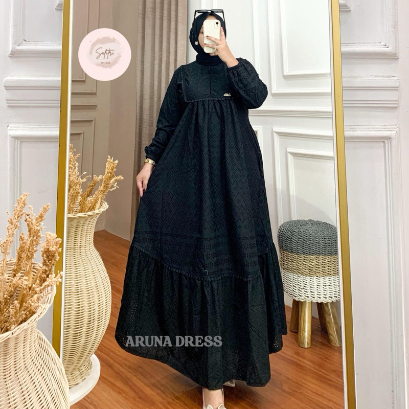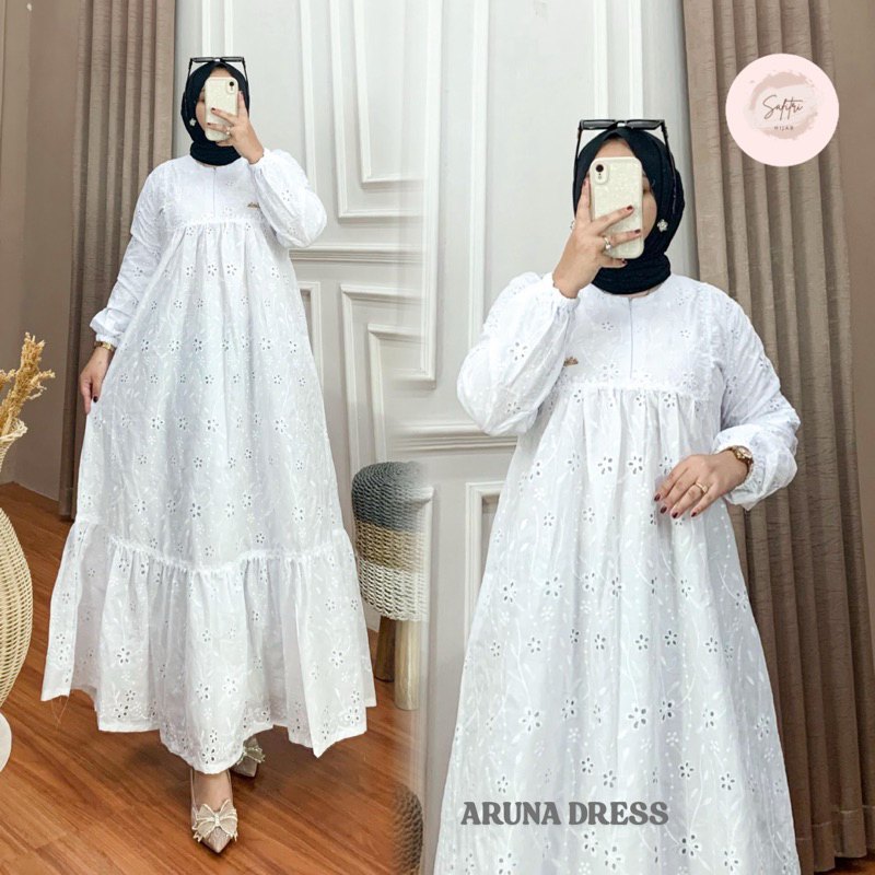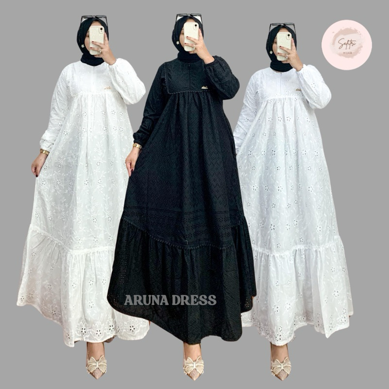 Aruna Dress Gamis Bahan Katun Bordir Bolong Katbol Tebal Full Furing Kondangan Mewah Luxury Manasik Haji Ihram By Safitri Fashion