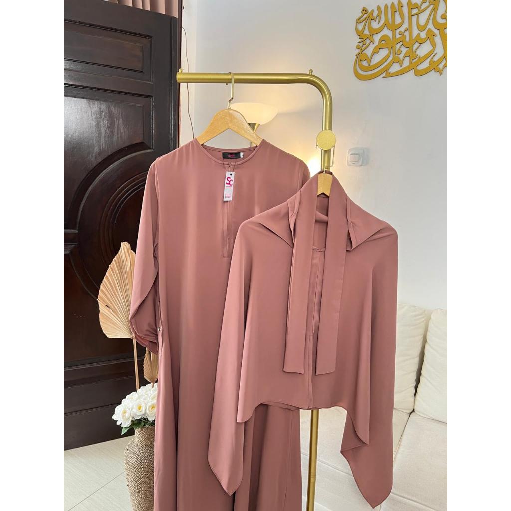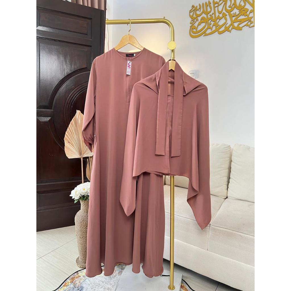 Syafacollection Safeea Abaya Set Khimar Marbella Silk Anti UV Gamis Muslim Umroh Haji