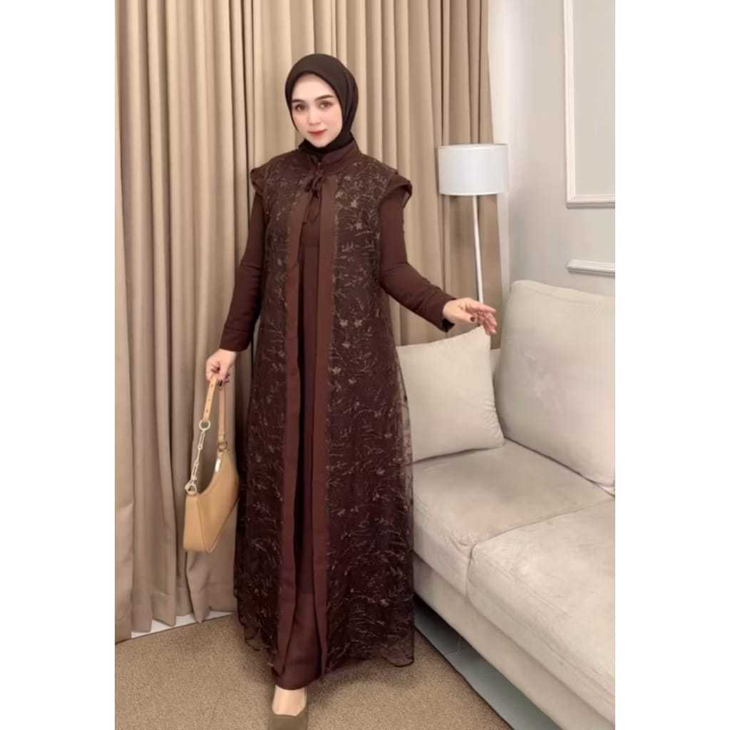 Baju Gamis Terbaru 2025 AYANA Dress Kondangan Outer Brukat Gliter Terlaris Gamis Pesta Mewah Elegan
