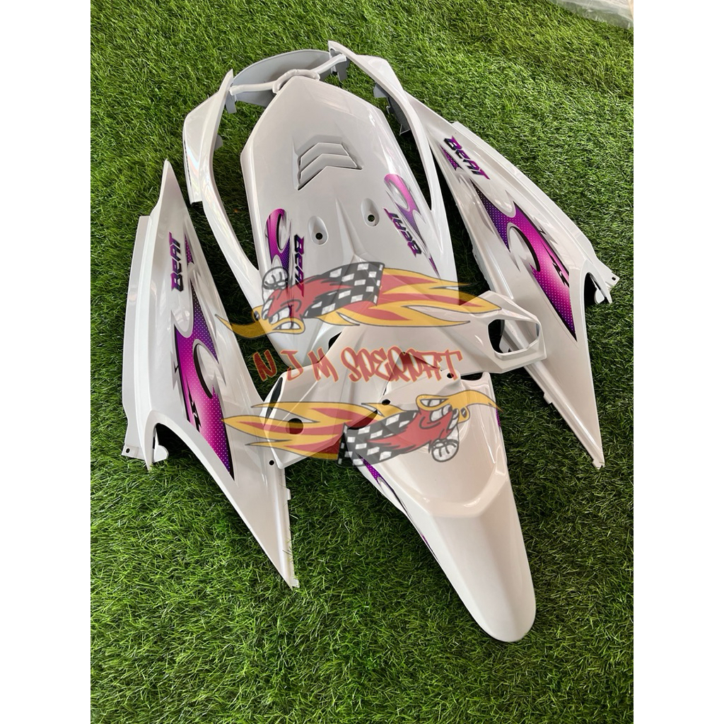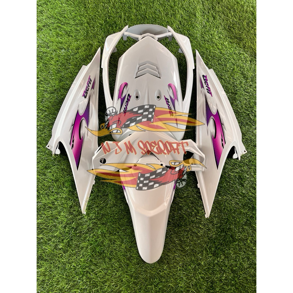 Cover Full Body Halus Honda Beat Karbu Tahun 2008-2012 Warna Putih Plus Striping Transparan(Untuk Melindungi Komponen In