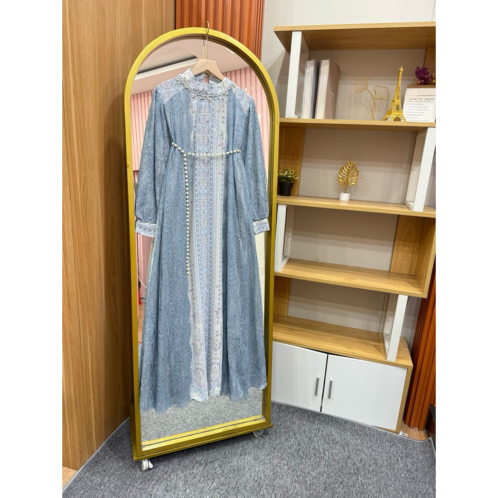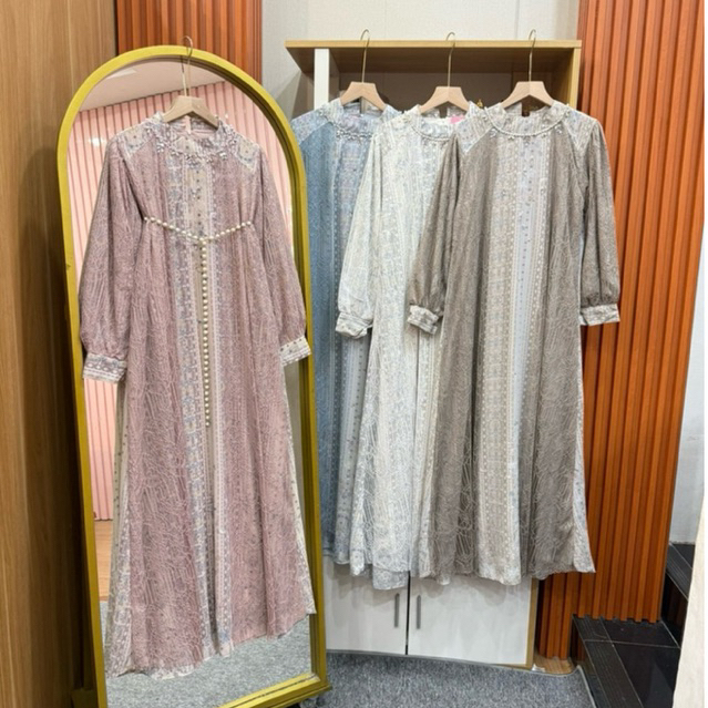 Fatunhijabs - Gema Maxi Dress Bahan Ceruty Mix Chantily Gamis Wanita - Free Belt