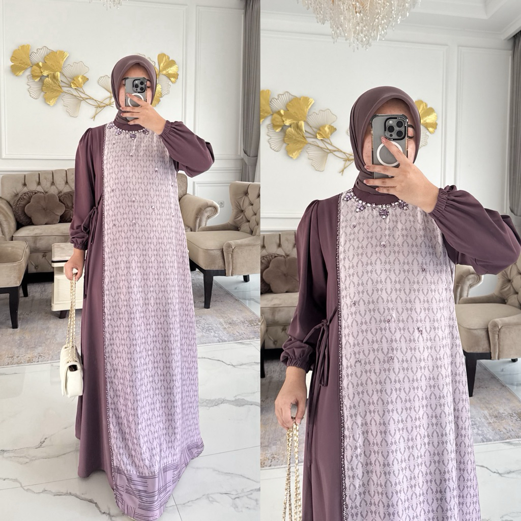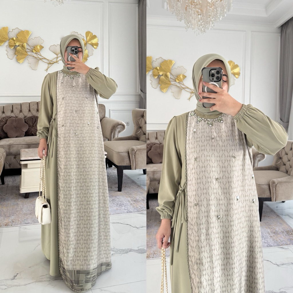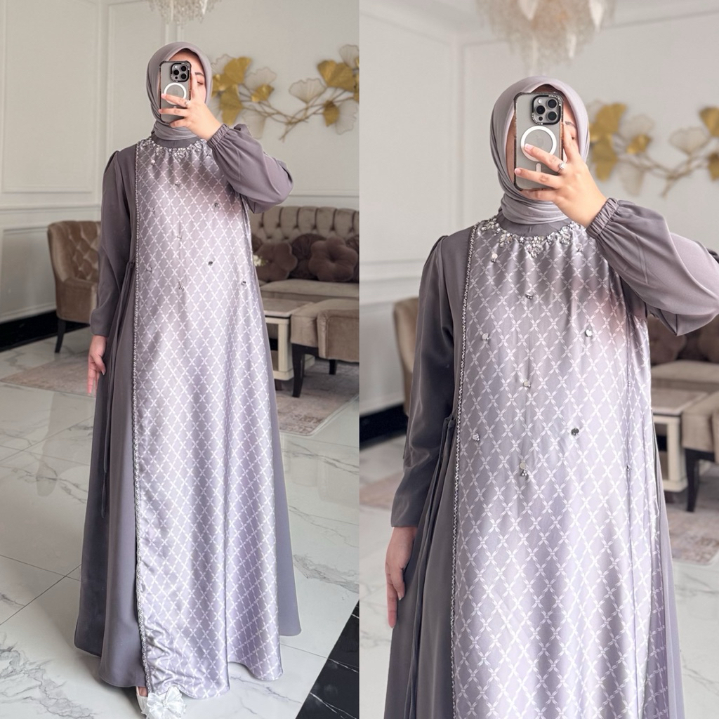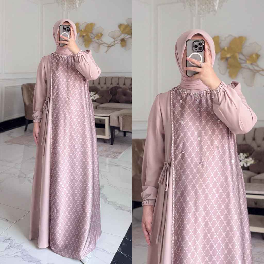 NNFashion SERUNI DRESS GAMIS WANITA MUSLIMAH REMAJA DEWASA Ibu Ibu Payet Kondangan Motif Kombinasi Polos