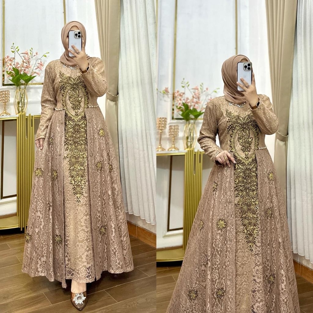 New Collection Gamis brokat bordir Payetfull furing/Gamis pesta mewah