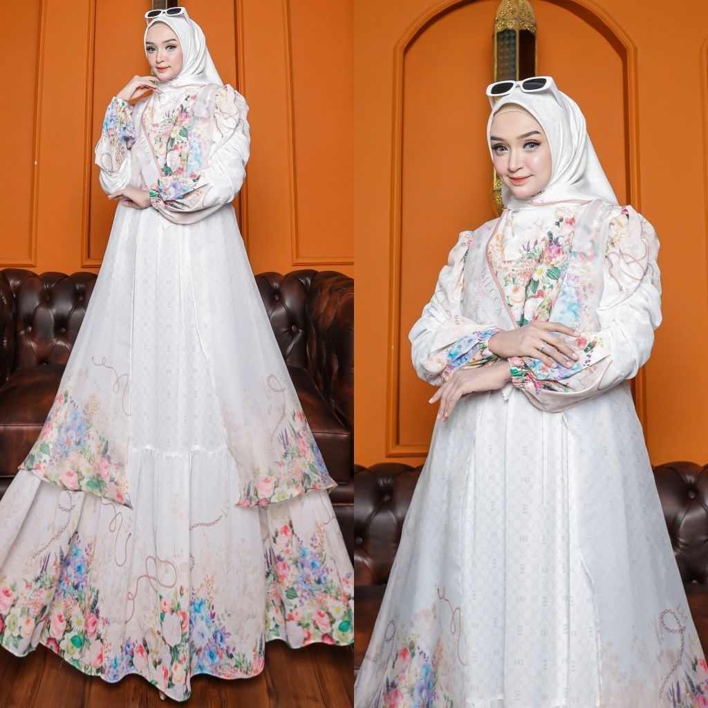 LAILA SERIES BY D'MECCA SYARI GAMIS CERUTY PREMIUM OUTER CARDI ORGANZA PRINTING SET JILBAB SCARF VOAL