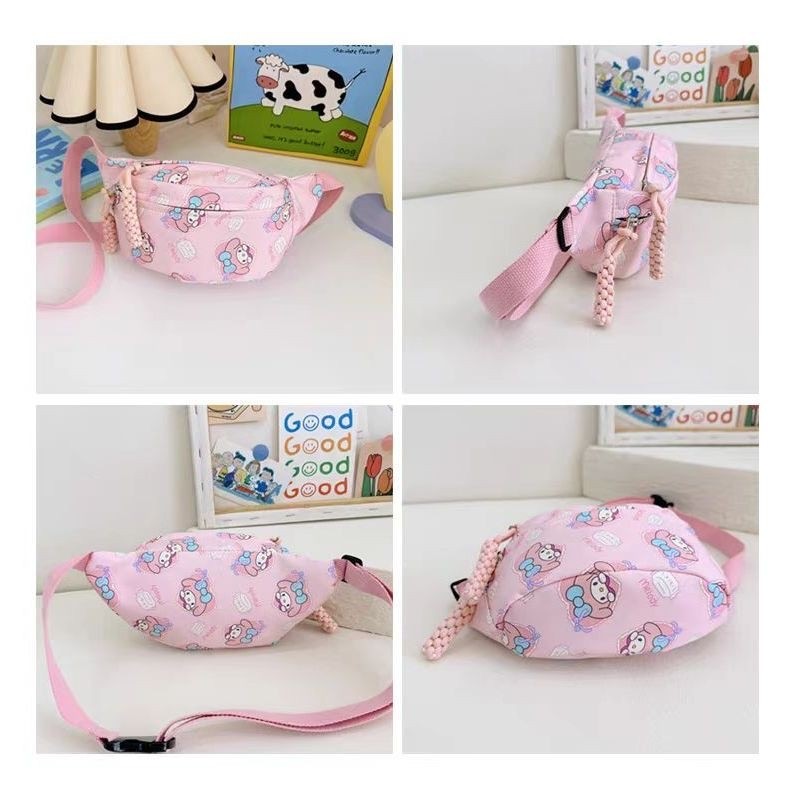 Tas Pinggang Tas Selempang Anak Motif Kartun dada wanita Tas Kanvas Diagonal Mode Sanrio Waist bag Shoulder bag