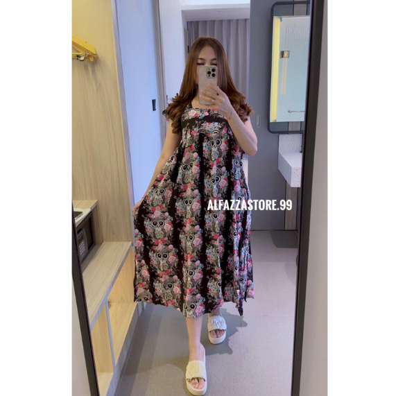 ALFAZZA LONG SUMMER DRESS Ruffle Babydoll Motif Casual Fit Rayon Viscose Lembut Outfit Pantai kekinian