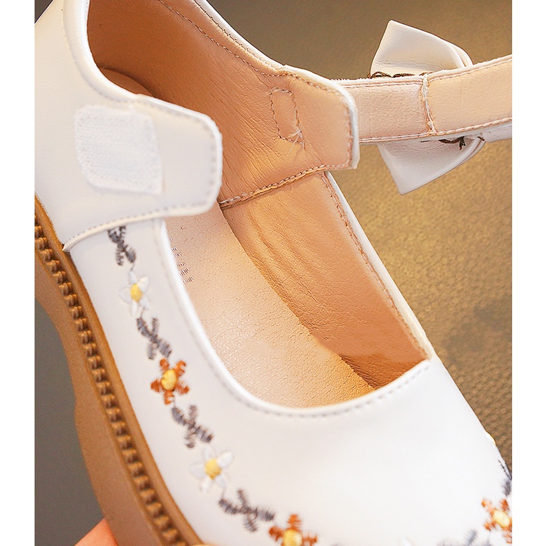 Sepatu Datar Kulit Bayi Perempuan Cantik Gaya Korea Sol Lembut Ikatan Simpul Bordir Sepatu Anak Nyaman Antilicin Usia 2-12 Tahun