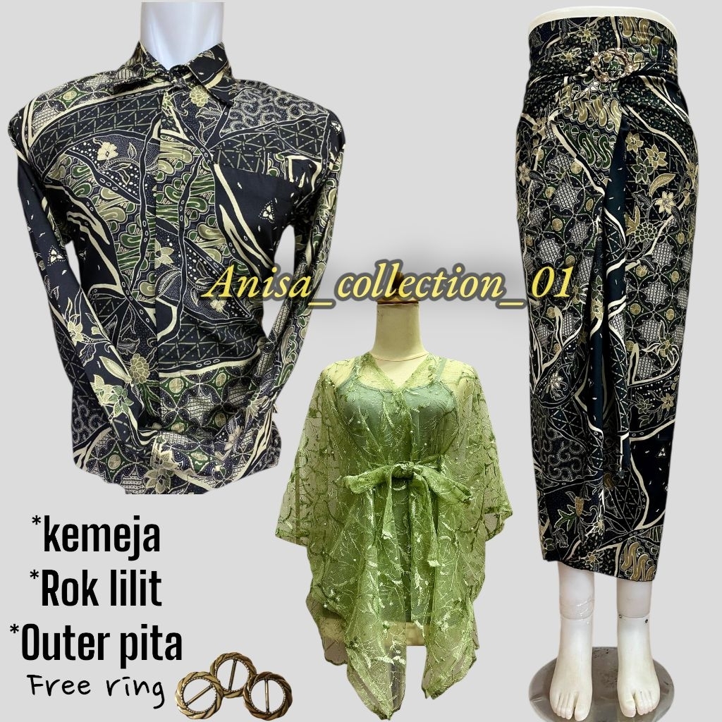 Couple Kemeja Batik Pria Rok Lilit Dan Outer Pita / Couple Kemeja Lengan Panjang batik terbaru 2024