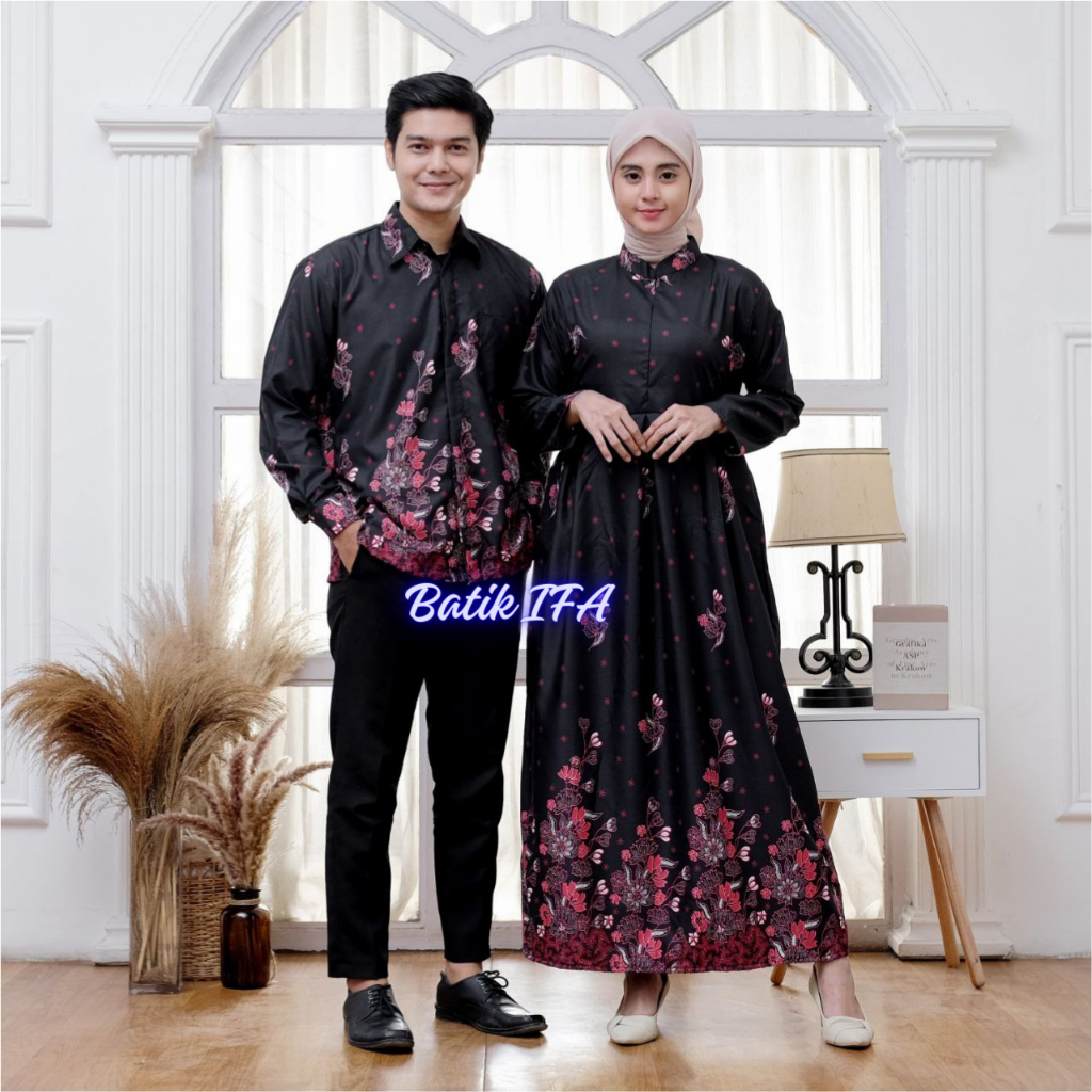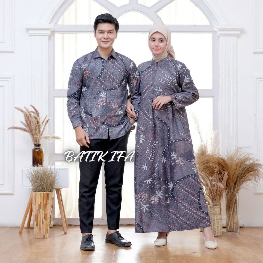 Baju Batik Couple Pasangan Gamis dan Kemeja Sarimbit Batik Keluarga - BATIK IFA