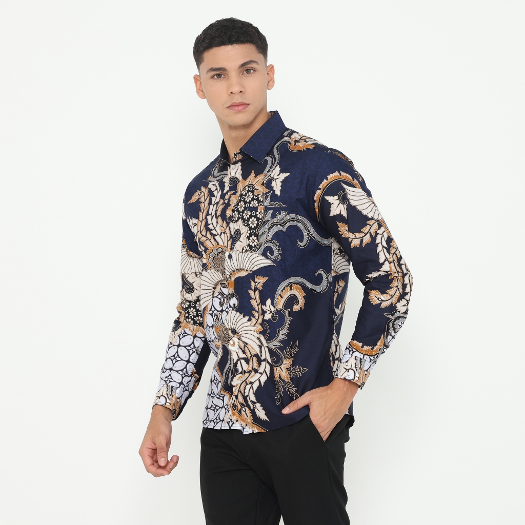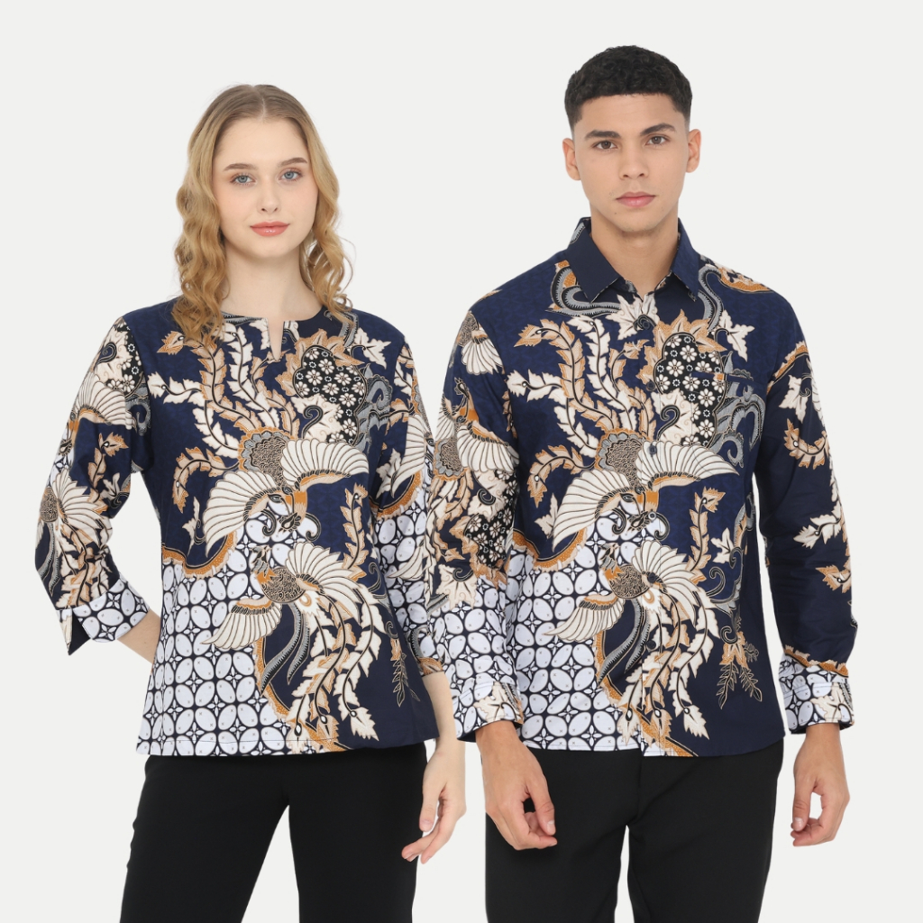 Dancus Batik Couple Atasan Batik Pria dan Wanita Warna Navy OLR303