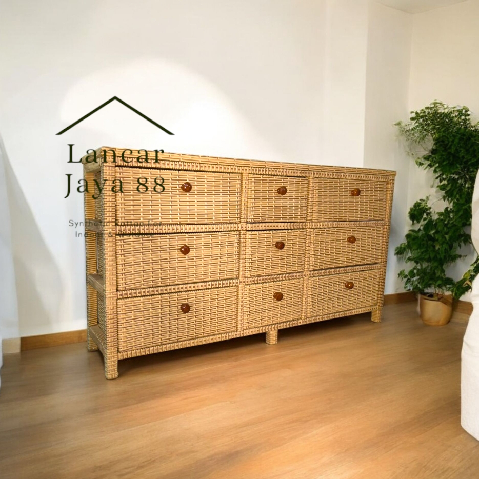 Meja Tv Rotan Lemari Laci 9 Rotan Sintetis Minimalis Anti Rayap Lemari Pakaian Rotan 9 Laci Lemari Tv Serbaguna