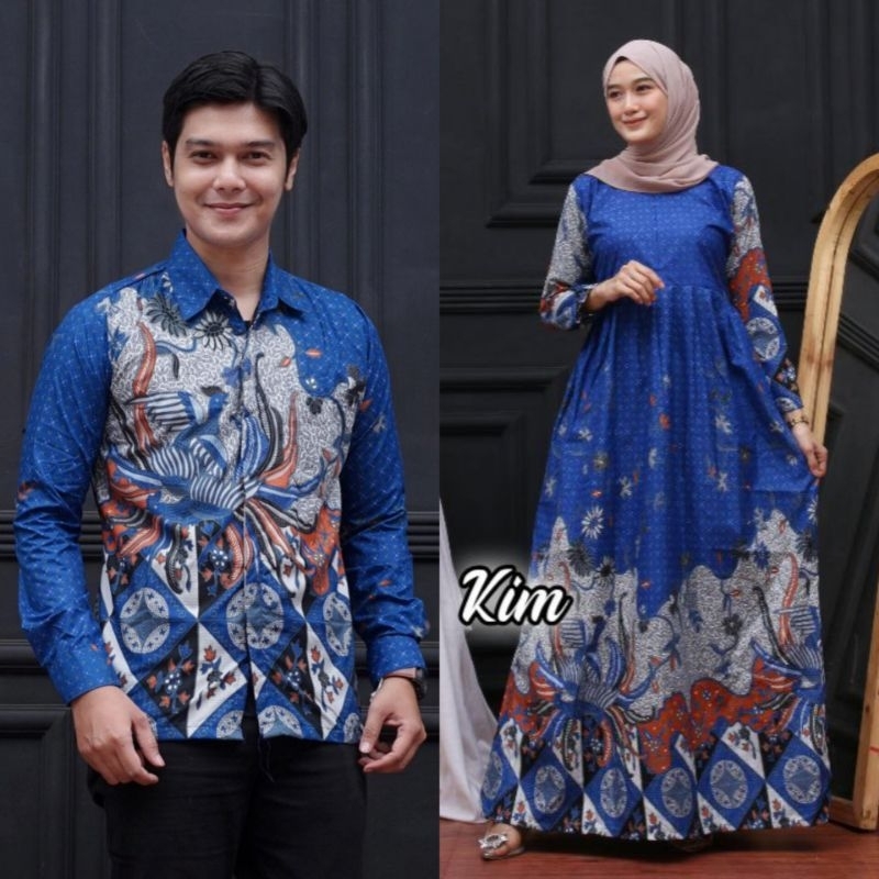 Harga Satu Pasang - Baju Couple - Baju Batik Couple Kemeja Lengan Panjang Gamis Maxi Tali Samping Motif Batik Pekalongan