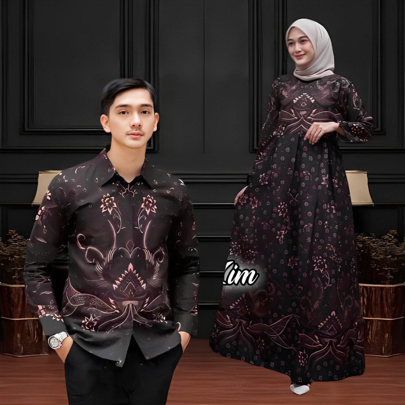 Baju Batik Couple Kemeja Panjang Gamis Maxi Tali Samping Motif batik