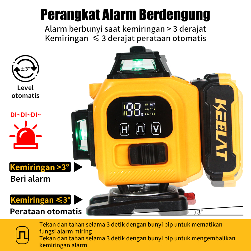 KEELAT Laser Level 4D 16 Lines Mesin Self Leveling Laser Sinar Hijau dengan Remot Laser Siku Waterpass Digital D
