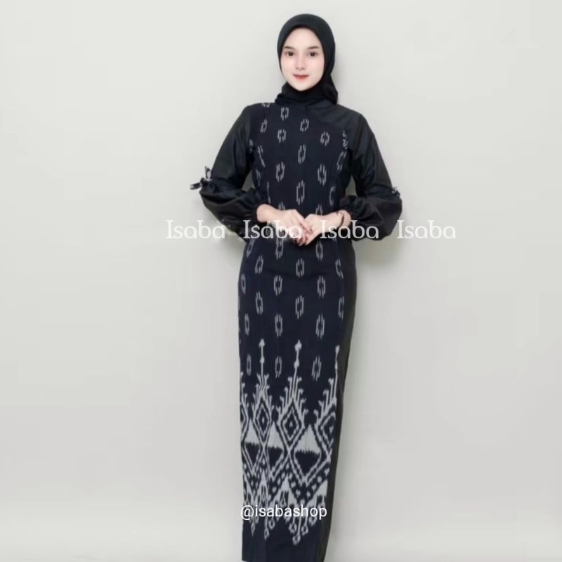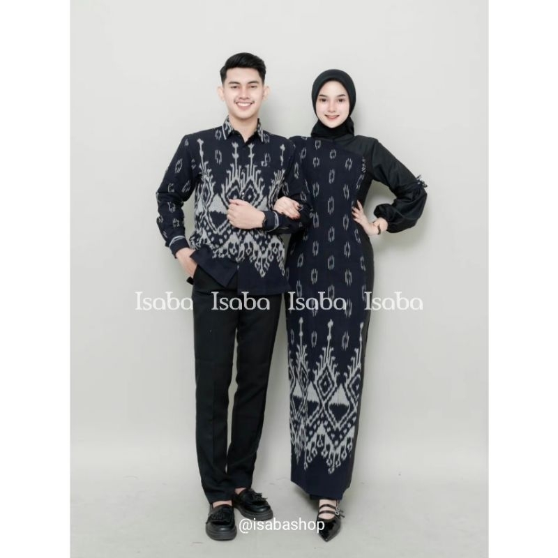 ISABA - BAJU TENUN COUPLE - COUPLE BATIK DRESS AZELLA BLACK - BAJU COUPLE PASANGAN KONDANGAN
