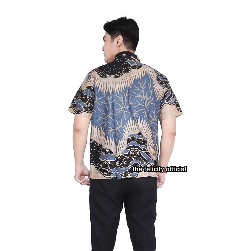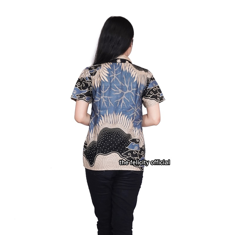 felicitybatik - Atasan Kemeja Batik Wanita Pria Couple Seragam Batik Berkerah Lengan Panjang Pendek [ hiu ]