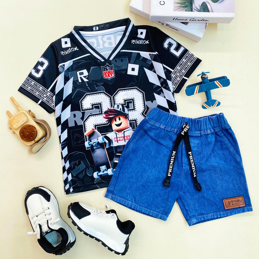 ESTISHOP X DINODAY SETELAN BAJU ANAK LAKI LAKI KAOS JERSEY ROBLOX CELANA CARGO PREMIUM
