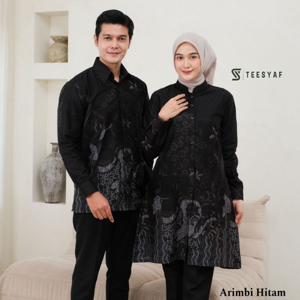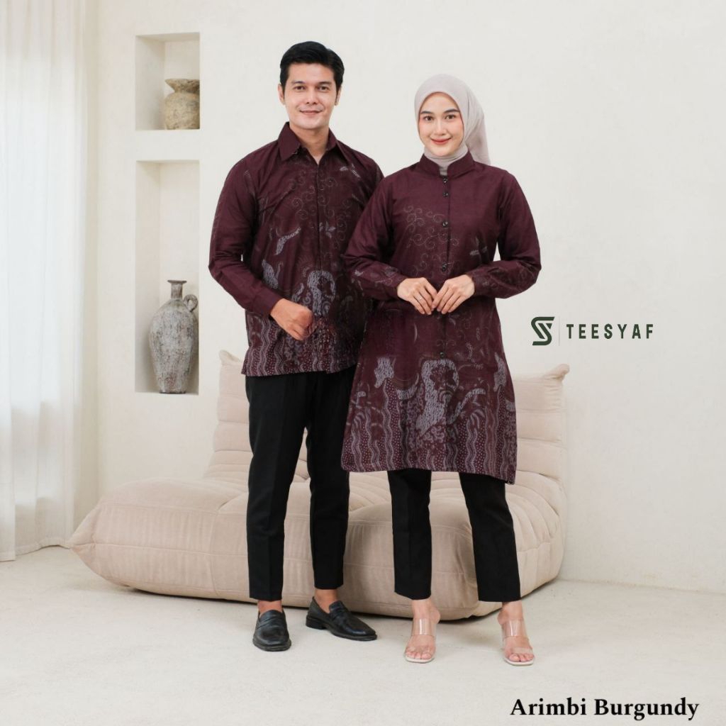 TEESYAF - AN1- 12 Tunik Batik Couple Atasan Seragam Kantor Pria Wanita Lengan Panjang Motif Arimbi