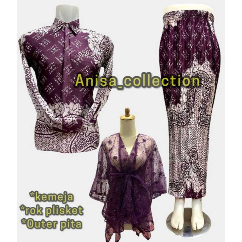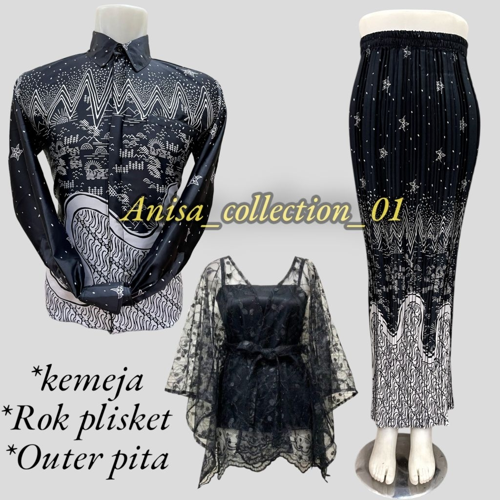 SET COUPLE KEMEJA BATIK ROK PLISKET / COUPLE BATIK / KEMEJA BATIK COUPLE ROK / COUPLE KEMEJA PLISKET DAN OUTER PITA KONDANGAN COUPLE PASANGAN