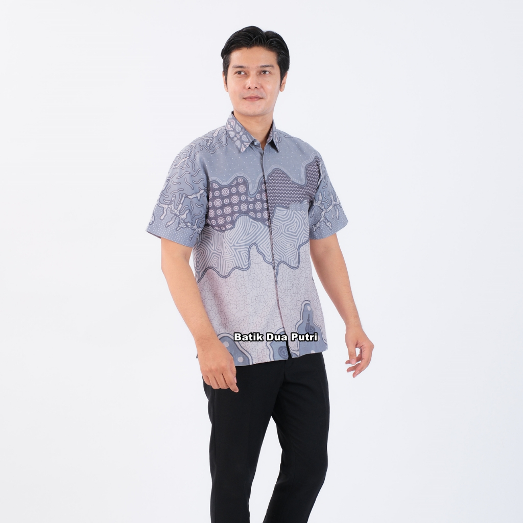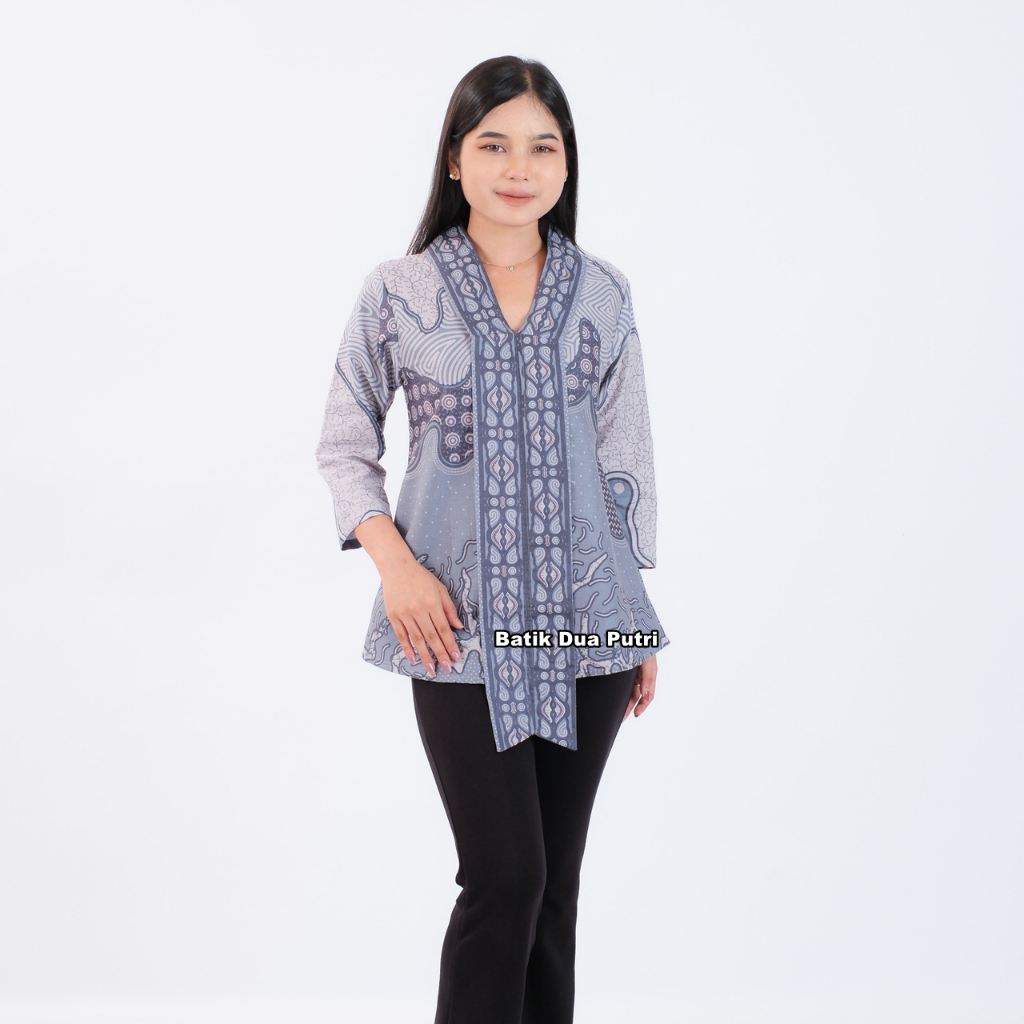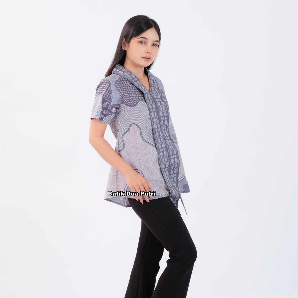 Atasan Batik Blouse Couple Wanita Kemeja Pria Color Grey Soft-SKU LABUBU Batik Dua Putri