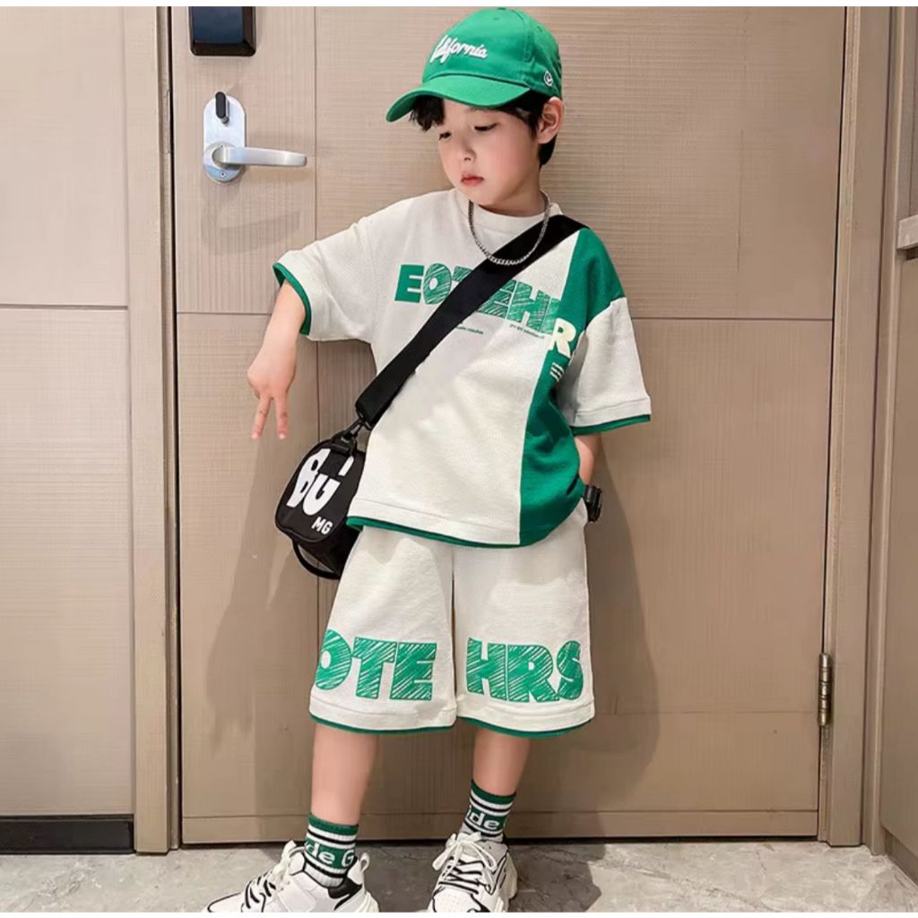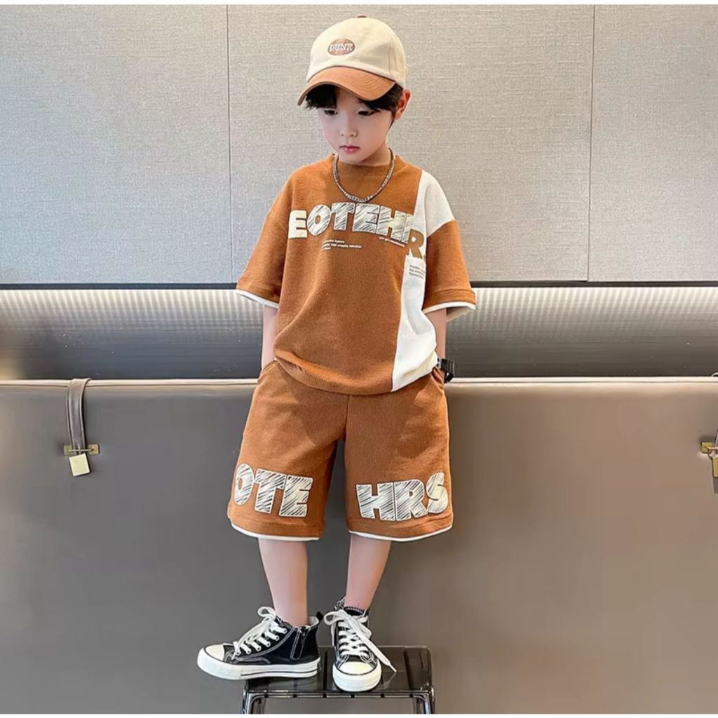 Setelan Anak Laki-laki 1-5 Tahun Motif Eootehrs Set Baju Kaos Celana Pendek Anak Cowok Kekinian