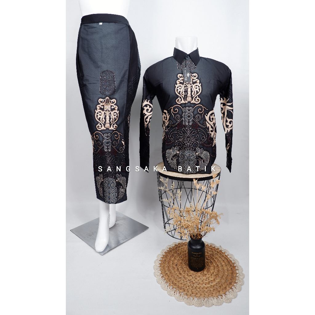 Sangsaka Batik - Baju Batik Couple Pasangan Kondangan Katun Rok Span Belahan Depan, Baju Couple Tunangan Wisuda