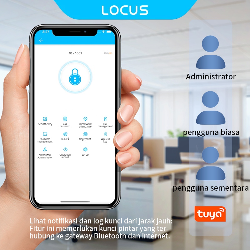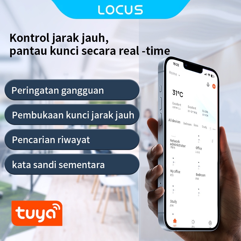 Locus S4 Waterproof Smart Door Lock, Kunci Pintu Geser, Kaca, Kunci Pintu Digital Sidik Jari, Bluetooth Tuya